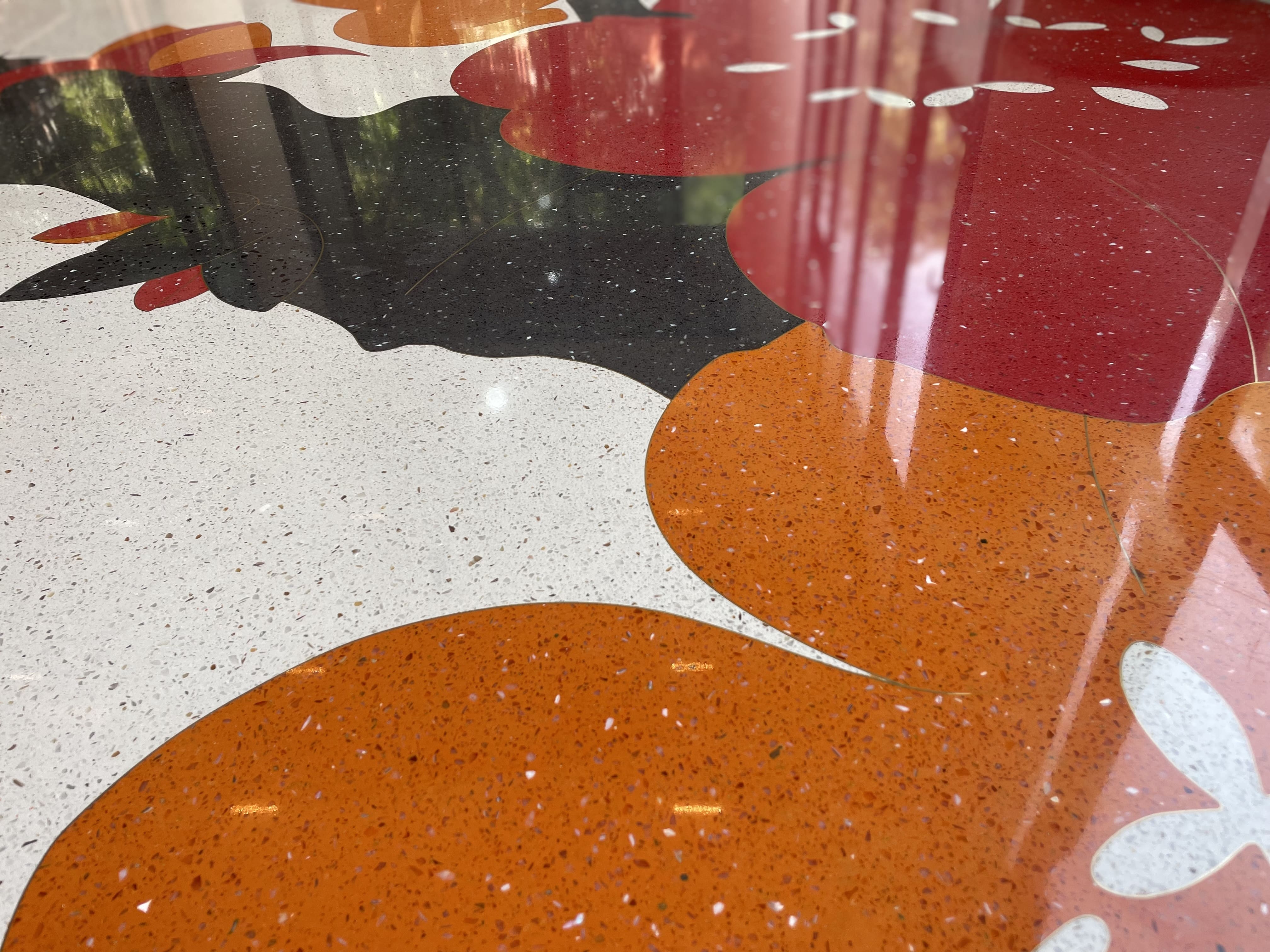 耐迪斯,作为专业的地坪解决方案提供商,其总部展厅地面采用了自家生产的环氧磨石地坪。该地坪以其独特的艺术纹理、卓越的耐磨耐压性能,以及绿色环保的特性,生动展示了耐迪斯产品的高品质与设计理念,为参观者营造出美观且实用的展示环境,同时也是对公司精湛工艺与雄厚实力的最佳诠释。