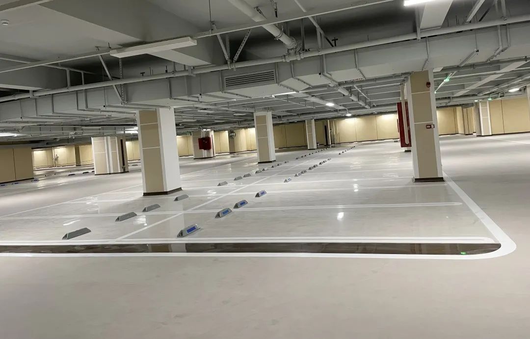 针对性地设计了两种车位地坪。环氧自流平表面平滑美观、绿色环保、漆膜强韧耐磨耐压;VIP车位采用了自流平彩砂,它拥有环氧自流平的全部优点,且装饰性更强更美观,满足业主更多个性化需求。