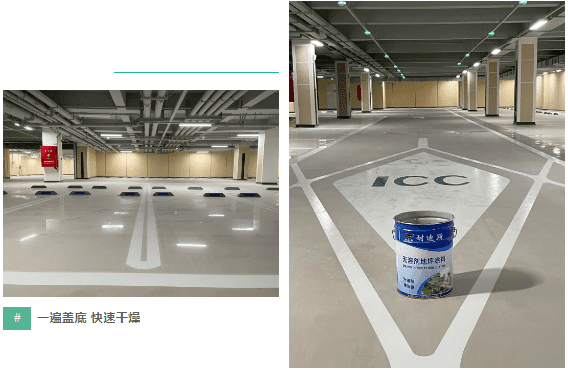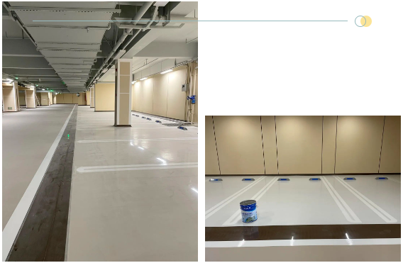 为更加适应场地特点及环境,耐迪公司设计团队为其作了通道钢丸地坪、车位自流平地坪+VIP自流平彩砂地坪,以及环氧圆弧角等一系列工程的规划,并于7月底完成一期工程的施工,在提升功能效果的同时,呈现更佳表观效果。