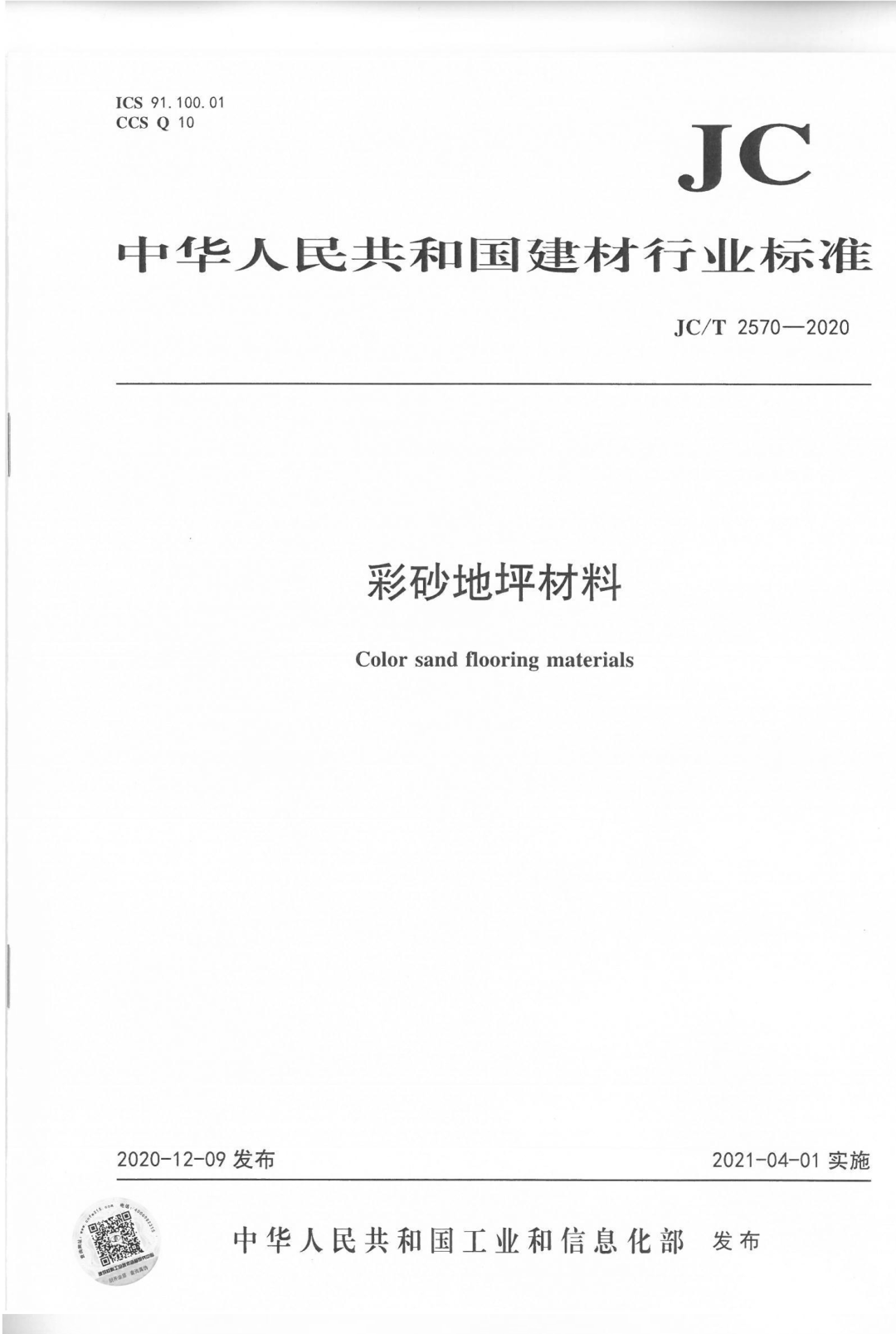 《彩砂地坪材料》行业标准
