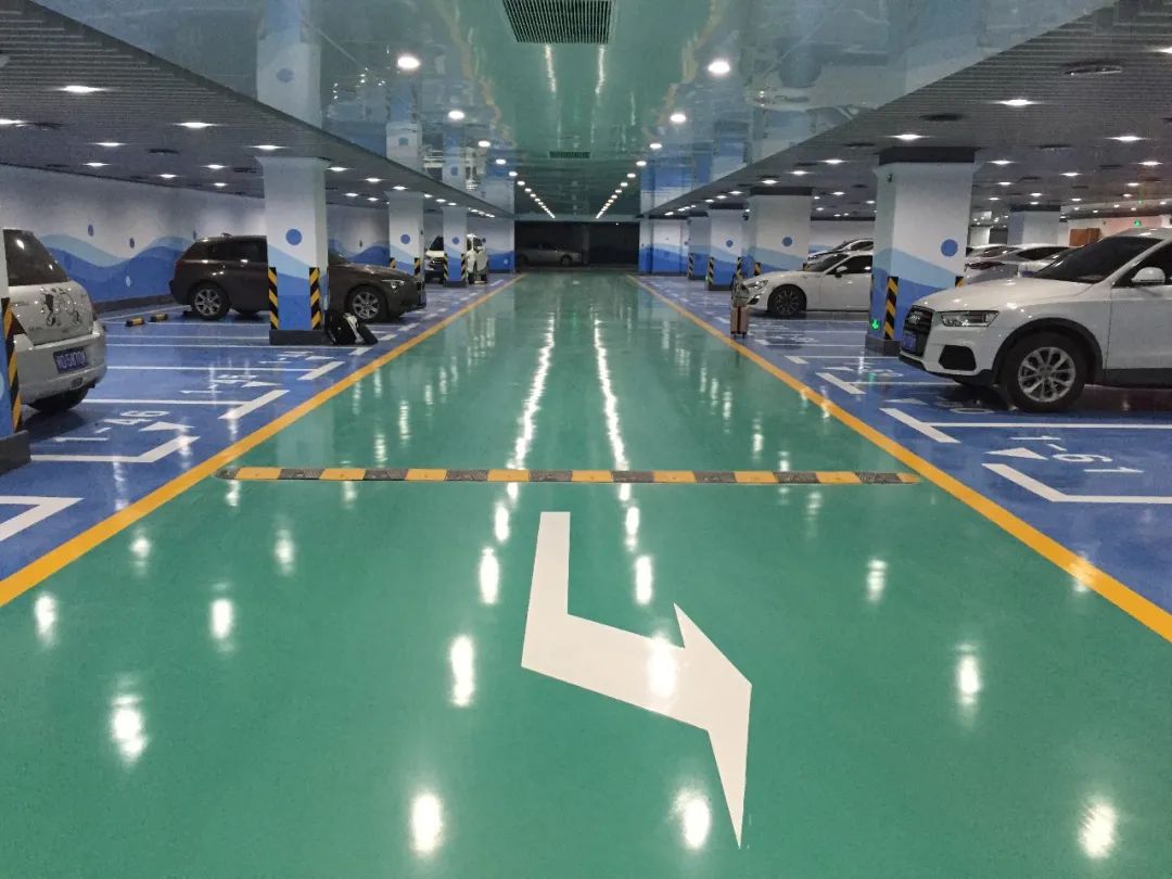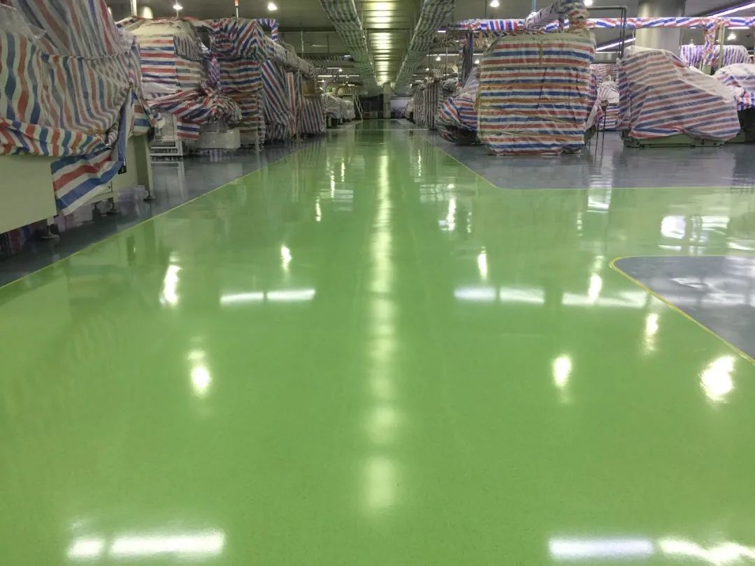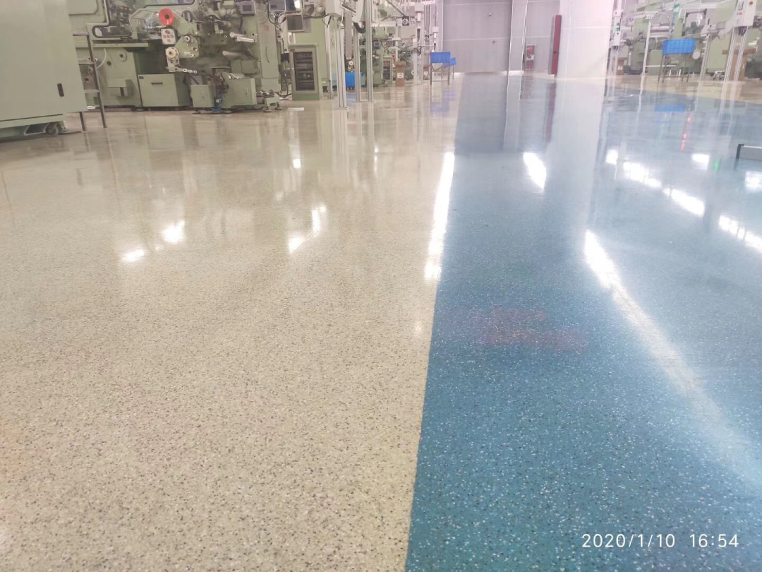 地坪类型:自流平彩砂地坪+圆弧角