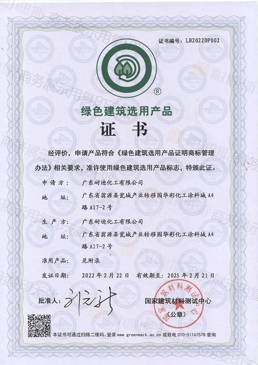 绿色建筑选用产品证书
