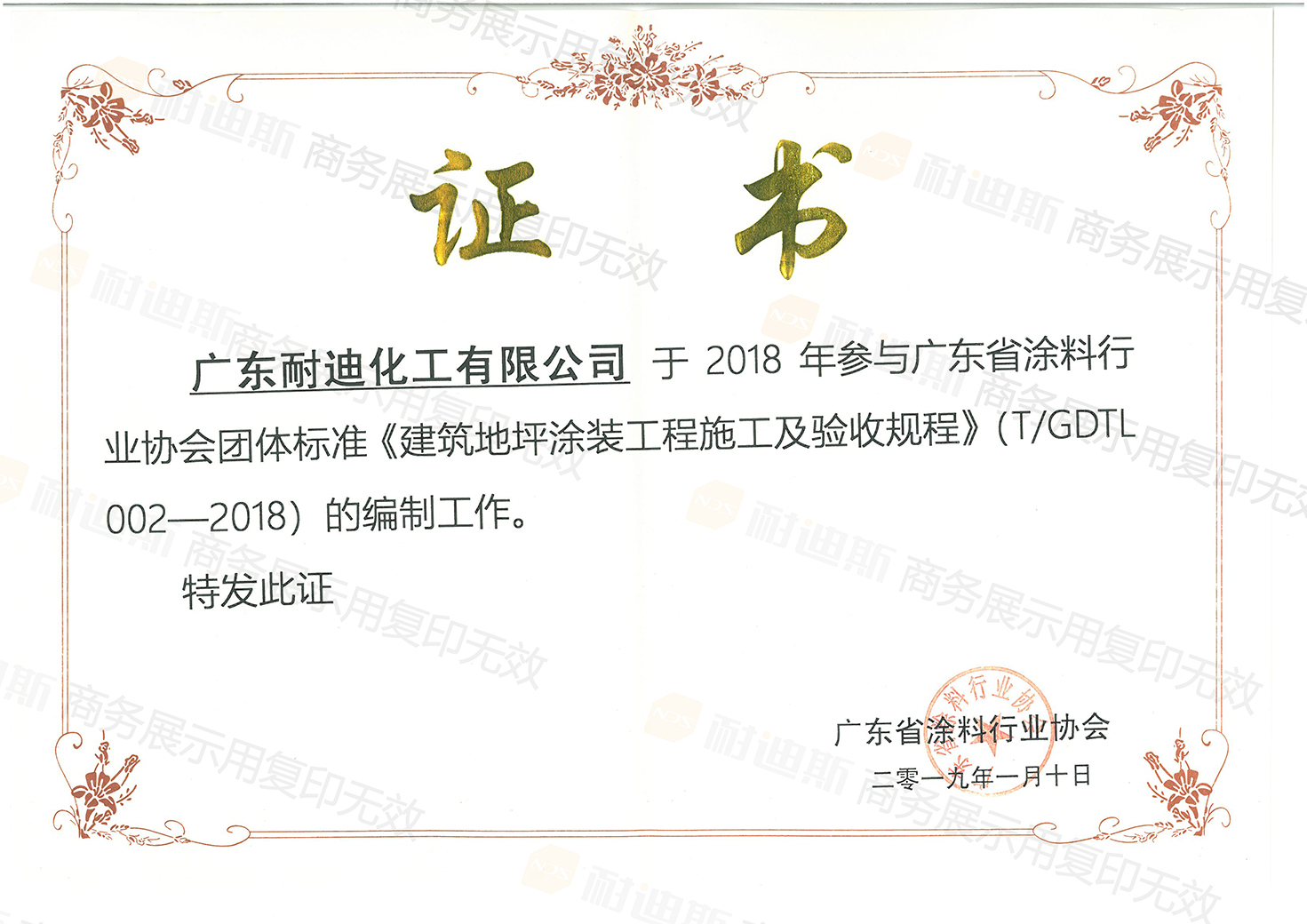 (建筑地坪涂装工程施工及验收规程)编制证书